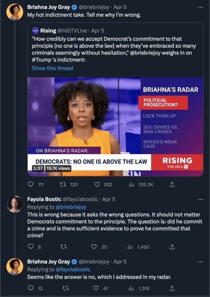 7. Gray hosts her own podcast, Bad Faith and is co-host on the YouTube program Rising from The Hill.